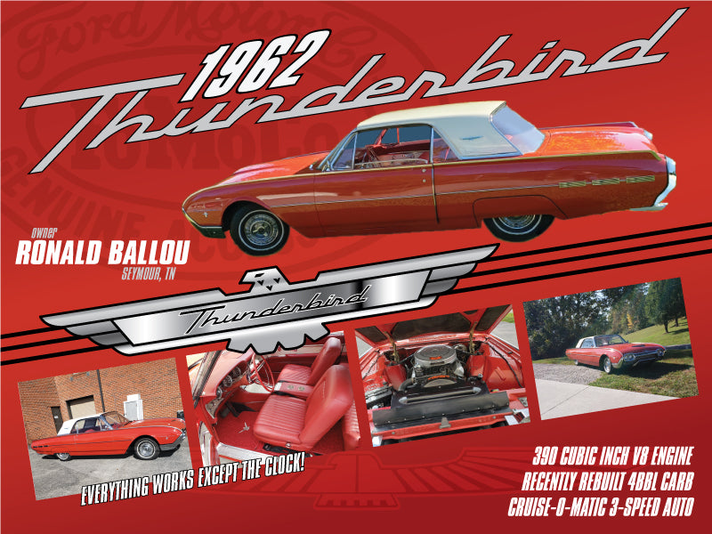 Starting at just $99, you'll get a custom-tailored showboard on a 24x18 coroplast board. More sizes and materials are available, such as vinyl banner and aluminum. We can also print it on photo poster paper for framing, which make great gifts for your family's gearheads! And if your car is your business, we can even make matching business cards, decals, and flyers! Stop into the shop for a consultation or email, message, or call to get your showboard made.